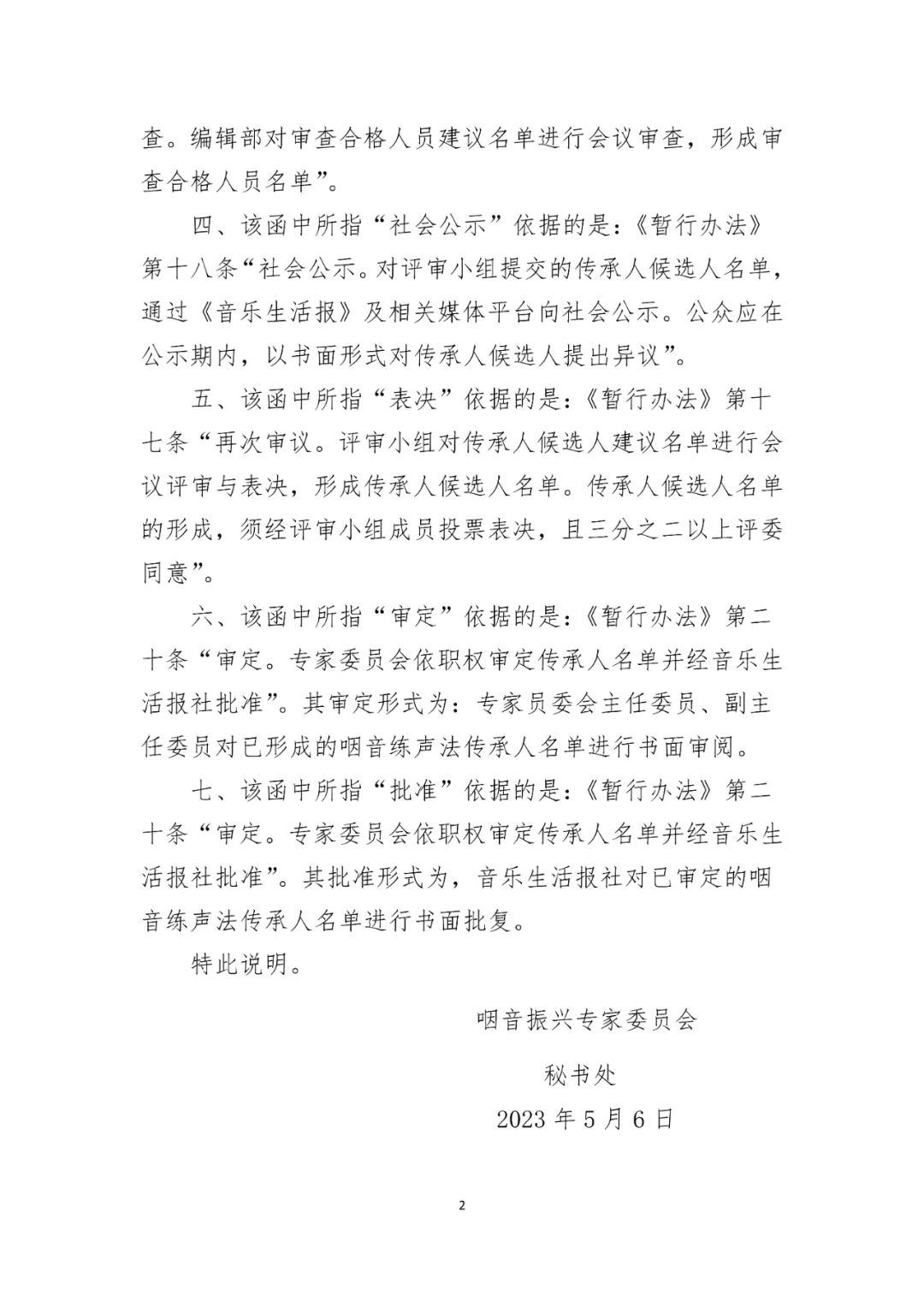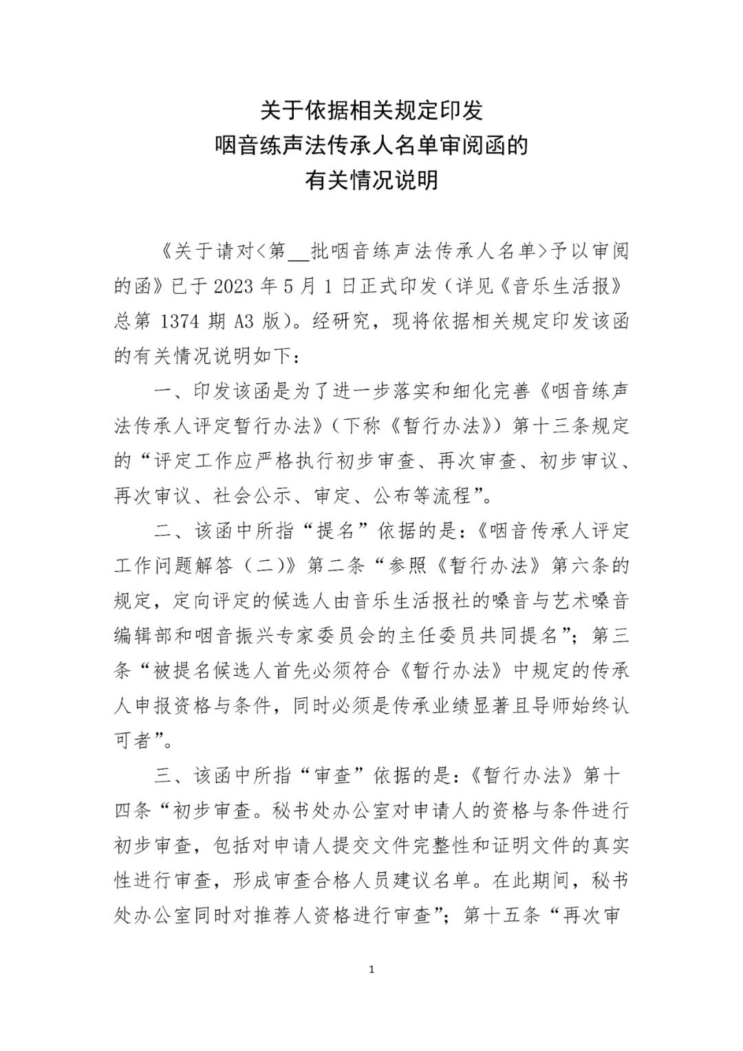 關(guān)于依據(jù)相關(guān)規(guī)定印發(fā)咽音練聲法傳承人名單審閱函的有關(guān)情況說明