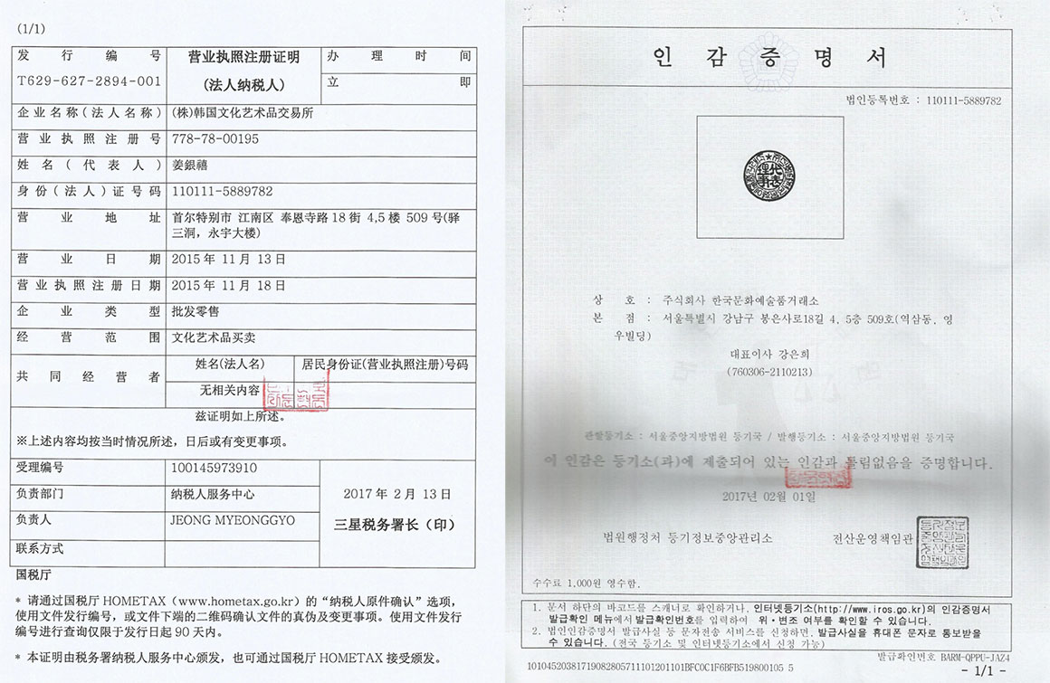 韓國(guó)文化藝術(shù)品交易所于2015年11月13日成立, 主要經(jīng)營(yíng)范圍:文化藝術(shù)品交易(郵票,貨幣,美術(shù)品等)、文化藝術(shù)品進(jìn)出口(郵票,貨幣,美術(shù)品等)、電子商交易、網(wǎng)路購物網(wǎng)站、移動(dòng)App開發(fā)、娛樂產(chǎn)業(yè)、海外觀光業(yè)、海外投資及眾籌、房地產(chǎn)開發(fā)、有關(guān)服務(wù)行業(yè)、有關(guān)批發(fā)零售、有關(guān)進(jìn)出口業(yè)務(wù)、有關(guān)附帶事業(yè)等。