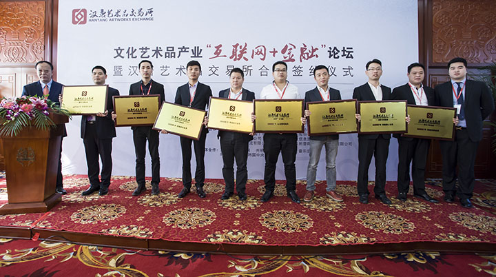 2015年10月29日,“文化藝術(shù)品產(chǎn)業(yè)‘互聯(lián)網(wǎng)+金融’論壇暨漢唐交易所授權(quán)與合作簽約儀式”在京隆重召開。文化部、中宣部、人民日報(bào)相關(guān)領(lǐng)導(dǎo),各界代表、金融文化界精英、頂級行業(yè)專家、各大實(shí)力經(jīng)紀(jì)商等嘉賓齊聚北京民族文化宮,共論了“互聯(lián)網(wǎng)+”時(shí)代下文化藝術(shù)品產(chǎn)業(yè)現(xiàn)狀、未來和發(fā)展,見證了北京天首基金、北京浩正投資、人民日報(bào)《人文歷史》、韓國友利銀行、韓國美術(shù)協(xié)會、韓國郵票商協(xié)會等幾十家中韓機(jī)構(gòu)與漢唐藝術(shù)品交易所合作的簽約。